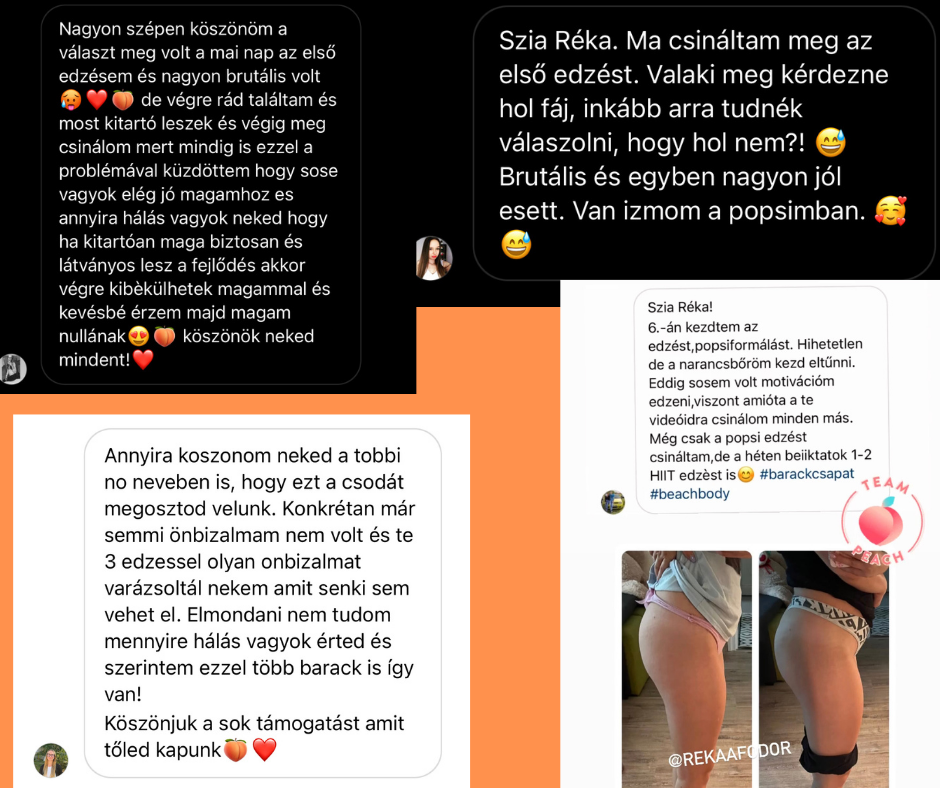 Fodor Réka -popsi, fenék edző – szerint a legfontosabb visszaigazolás a tagok hihetetlen átalakulásai és eredményei. Ezeket senki se vonhatja kérdőre. Illetve nagyon fontos, hogy a Barackcsapat egy szeretetteljes női közösség, ahol egymást motiváló, segítő nők vannak jelen.
