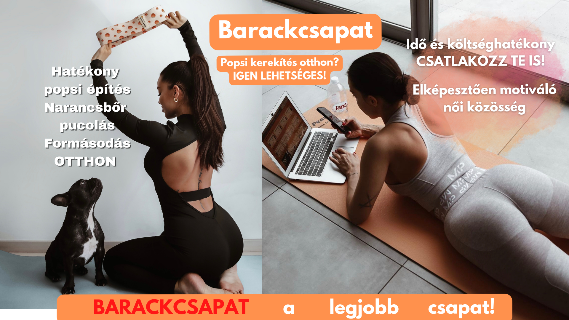 A Barackcsapat egy olyan edzésmódszer, amely számos edzést kínál otthoni környezetre szabva, kifejezetten a nők igényeit és kényes területeit szemelőtt tartva és amely már több EZER nőnél bizonyított és bizonyít.