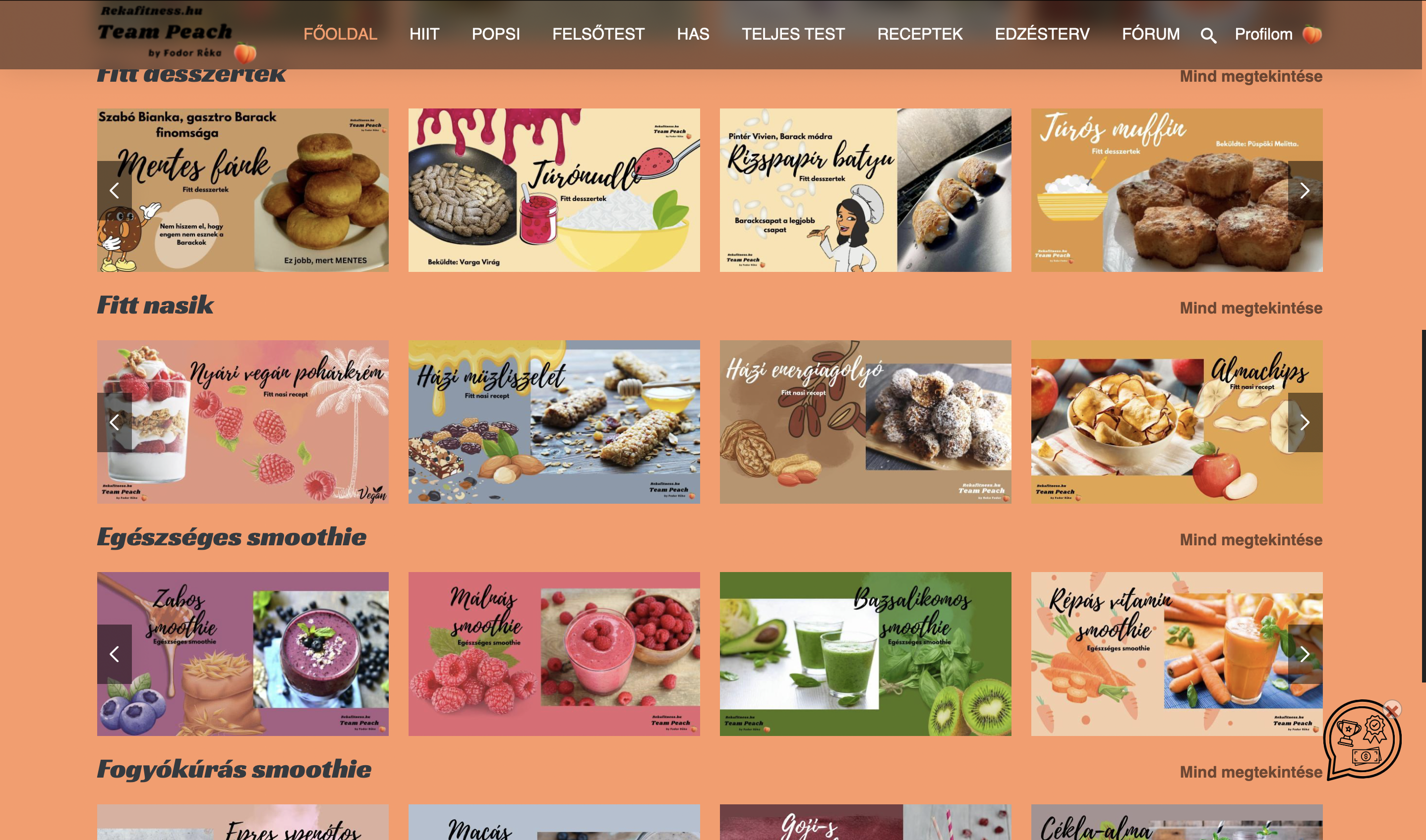Ezért is van a Barackcsapatban több, mint 140 egészséges recept ( lehet mire olvasod még több, hiszen havi 30-40 új recept kerül fel) és a teljes hozzávaló lista, elkészítése javaslat, mindez kategóriákra bontva segítik a nőket, hogy az online edzéssel a maximumot hozzák ki magukból.